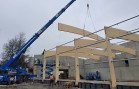 Naše konstrukce zakrývá plochu o rozměrech cca 68 x 22 m, kde bude ledová plocha pro curling současně s restauračním provozem. Ve střešní rovině jsou použity lepené dřevěné obloukové vazníky v osových vzdálenostech 6 m a s nadvýšením cca 0,5 m. Oblouky jsou na jedné straně kotveny do železobetonové stěny a na druhé straně jsou s pomocí ocelových prvků uloženy na dřevěných sloupech opět z lepeného lamelového dřeva, ale nyní již v přímém provedení. Dřevěná konstrukce z důvodu optické subtilnosti je doplněna o ocelové ztužující prvky z trubek a ocelového zavětrování. Tato ocelová ztužidla jsou použita jak ve střeše tak i ve stěně.