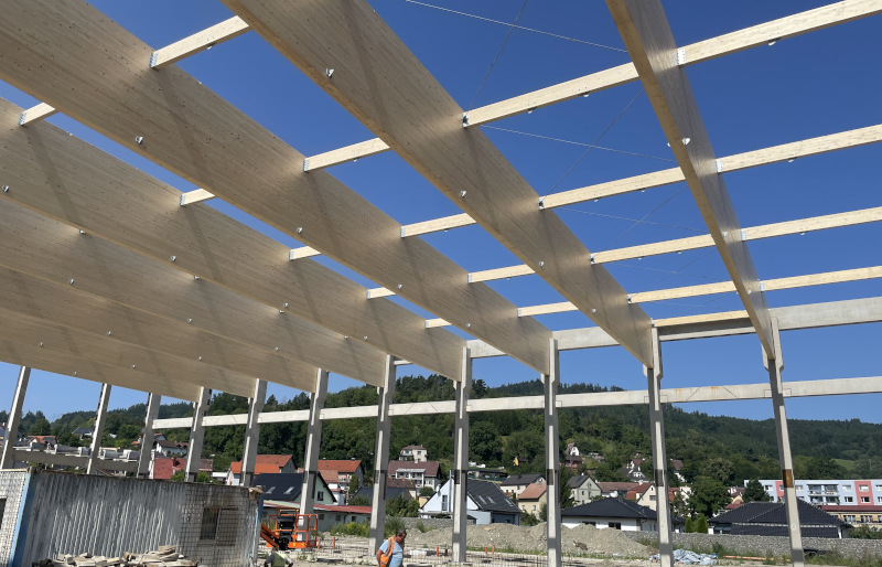 nosnou konstrukci z lepeného lamelového dřeva v přímém provedení a je doplněna o lepená ztužidla.