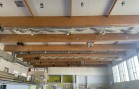 Střešní konstrukce je dále doplněna lepenými dřevěnými ztužidly, řezanými nepohledovými krovy a střešním záklopem z OSB desek. Pro zavětrování konstrukce jsou použity ve dvou polích ocelové zinkované zavětrovací kříže.