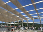 Střešní nosná konstrukce z lepeného lamelového dřeva o rozměrech 200 / 2240 mm,délky 31,68 m ...